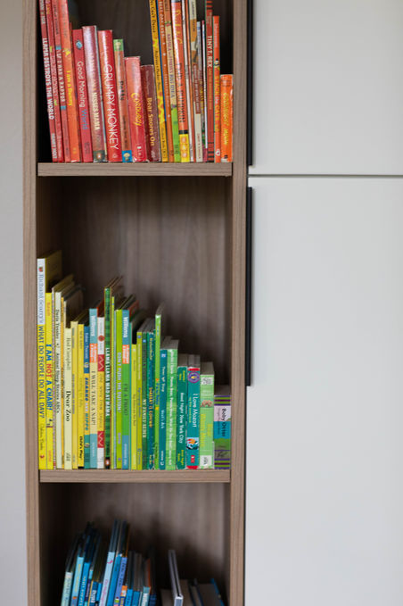 The goal was to create a space with added contrast and character while maintaining a warm, modern aesthetic that highlights the home’s original features, such as its tall ceilings. A key priority for the client was to incorporate extra storage in both the family and living rooms. The challenge was to integrate built-ins seamlessly into the existing space—functional yet visually appealing, without feeling bulky or out of place.